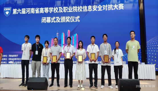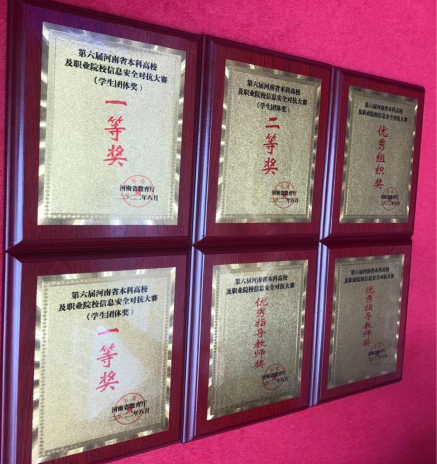 8月19日上午,由河南省教育厅主办的“第六届河南省本科高校及职业院校信息安全对抗大赛”在河南经贸职业学院圆满落幕。我校伟德(bevictor)官方网站共派出两支代表队参加本次比赛,由伟德(bevictor)官方网站院长黄宇达带队,李学威和王晓菲分别作为两队指导教师全程指导,线下分组对抗赛经过一天紧张的角逐后,两队分别以高职组第三名和第五名的成绩获得一等奖,在应急响应赛环节中由何翠萍老师指导的代表队获得应急响应赛二等奖(全省综合成绩前40名代表队参赛含本科队),学校获得优秀组织奖,李学威、王晓菲两位老师获得优秀指导教师奖。李森森、常益翔、罗亚宁等9名学生分获个人线上比赛一等奖。
