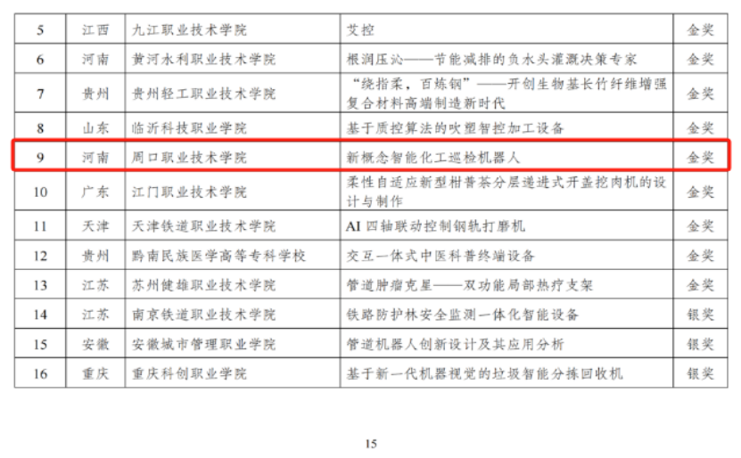 第十八届“振兴杯”全国青年职业技能大赛学生组创新创效竞赛全国决赛于11月9日至11日在河南郑州举行。经过省赛、全国预选赛多轮角逐,共有来自全国26个省份的241件作品入围全国总决赛,其中中职组作品88件,高职组作品153件,涵盖技术革新、创意设计和管理创新3个竞赛方向。经过激烈竞争比拼及专家层层评审,伟德(bevictor)官方网站由张矿伟、轩立两位老师指导,任俊臣、卜焱等同学设计的《新概念智能化工巡检机器人》项目在高职组创意设计类赛项中以全国第九名的优异成绩荣获金奖。
