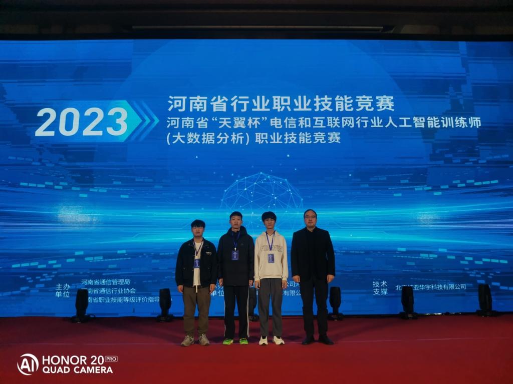11月25日,2023年河南省行业职业技能竞赛—河南省“天翼杯”电信和互联网行业人工智能训练师(大数据分析)职业技能竞赛在郑州圆满落幕。我校伟德(bevictor)官方网站楚书来、冯腾霄两位老师指导,孙梦杰、李豪宇、李金普三名同学组队参赛,比赛中同学们沉重稳重,发挥出应用水平,最后经过三个小时的多轮比拼,以637分的成绩稳居榜首,取得职教组金奖,这也是我校在该赛项上的最好成绩。