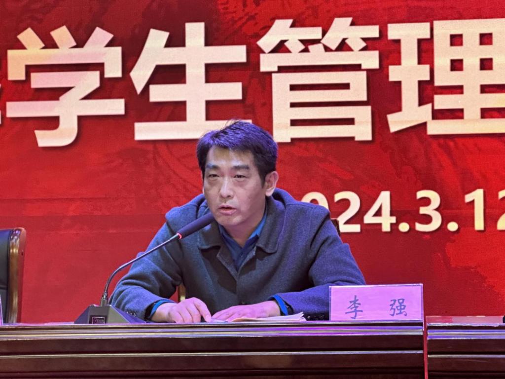 最后,李强总结讲话,李书记首先用三个一来总结学院的日常学生管理工作,即一天一通报、一周一评比、一月一个主题活动;接着,李书记重点强调了学生安全工作,即学生宿舍安全,要进一步排查大功率电器及做好宿舍网格化管理,学生财产安全,要进一步做好防范电信诈骗工作,讲话结尾,李书记用四句话与大家共勉:心中有爱无私奉献,肩上有责担当有为,手中有策善做善成,脚下有力行稳致远。