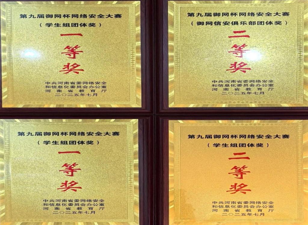 第九届“御网杯”网络安全大赛被列入河南省高等学校大学生学科竞赛省级名录A类竞赛,在全学科全专业的各类比赛中排名第7位。本次大赛以“向新向善、智创未来”为主题,线上线下赛事吸引了全国范围的广泛参与,共汇聚全国28个省、369所院校的1.8万余名选手同台竞技,参赛规模创历史新高,较首届增长14倍。决赛采用“应急响应+实网渗透+安全防御”的实战形式,全面考察选手的综合能力。经过线上赛和线下赛,大赛共产生:线上个人赛奖1512个(一等奖308个、二等奖490个、三等奖714个),线下团体赛奖267个(一等奖65个、二等奖95个、三等奖107个)。