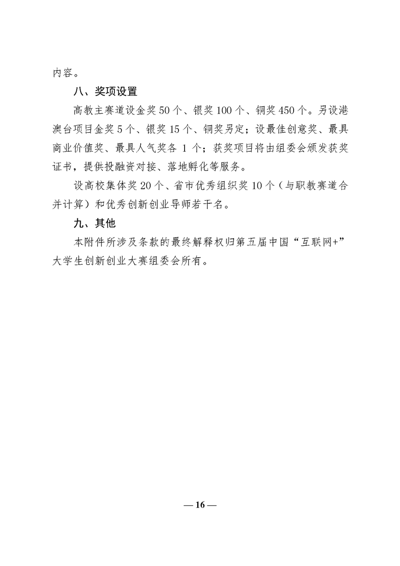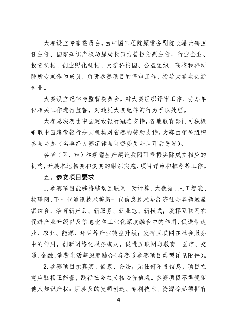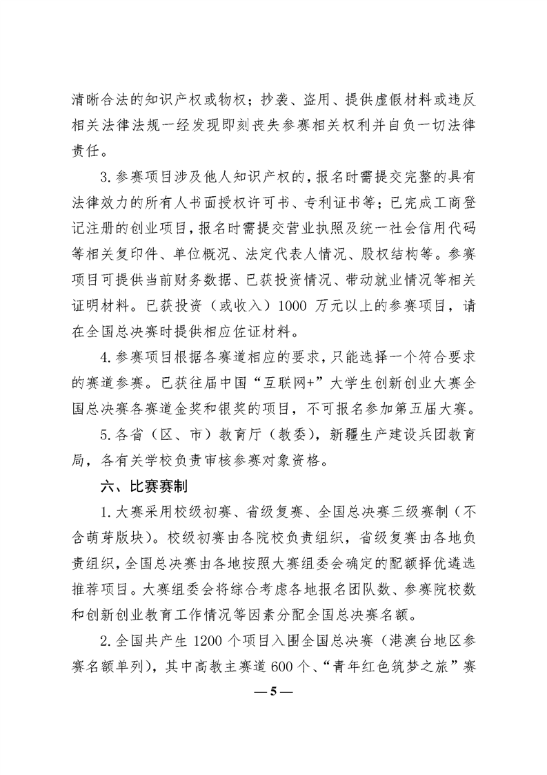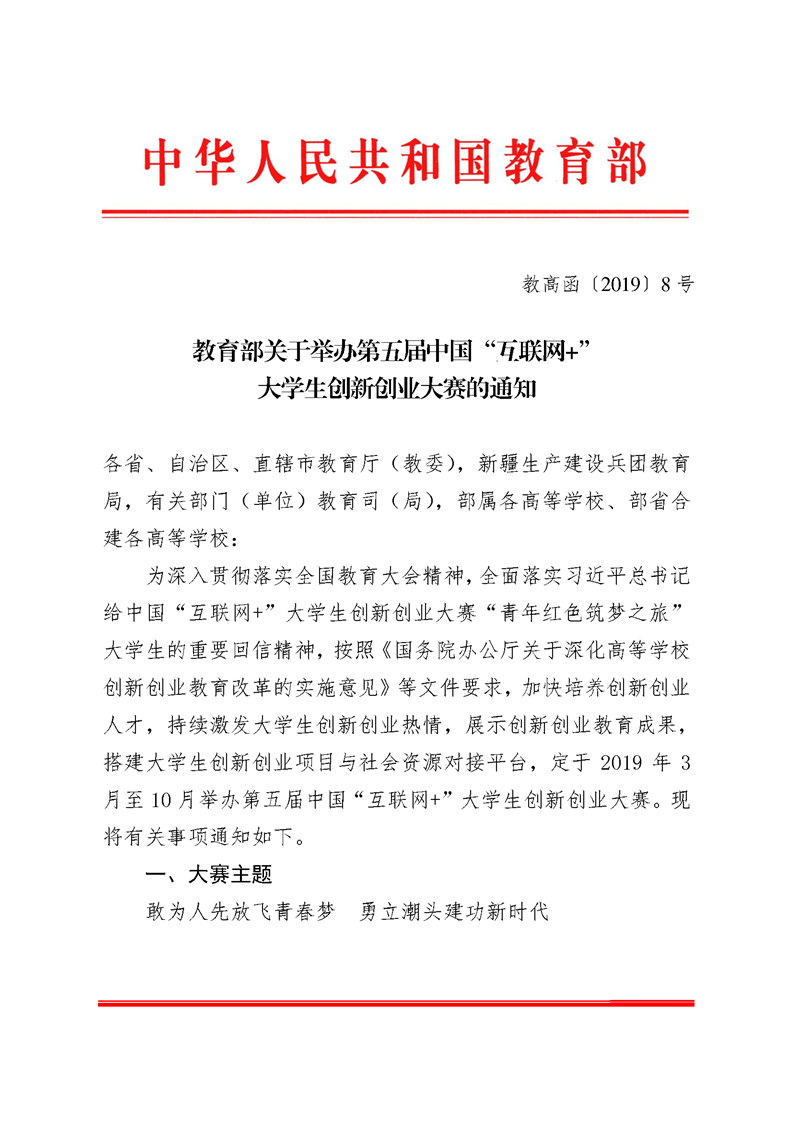 教育部关于举办第五届中国“互联网”大学生创新创业大赛的通知