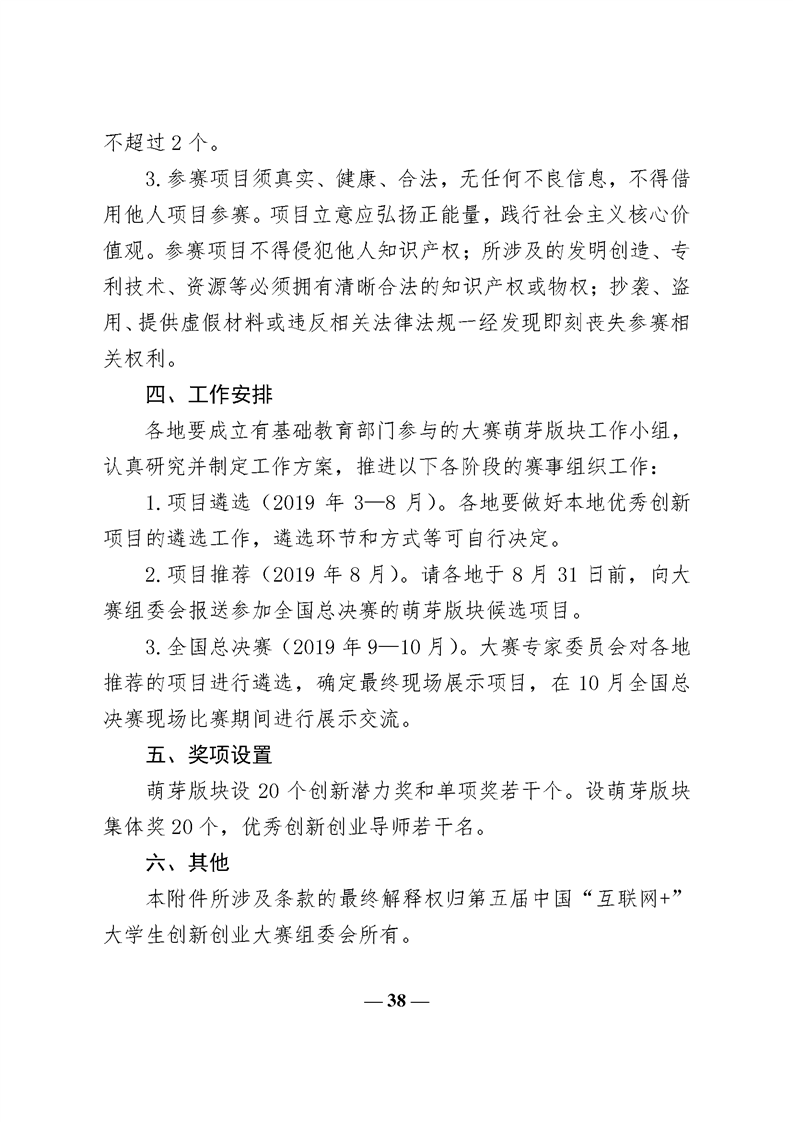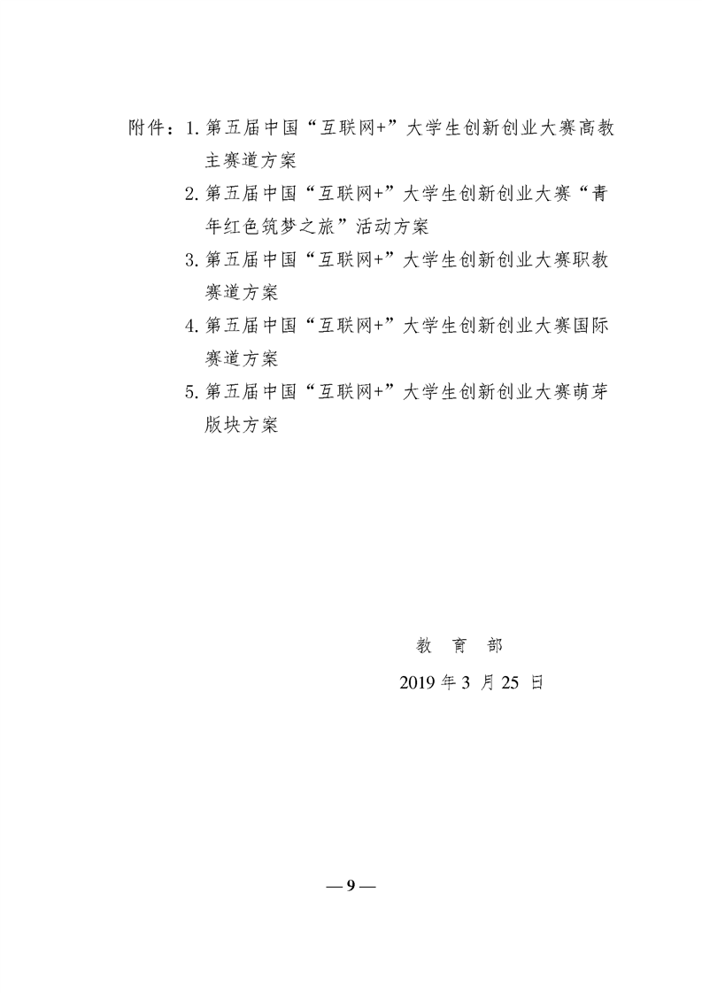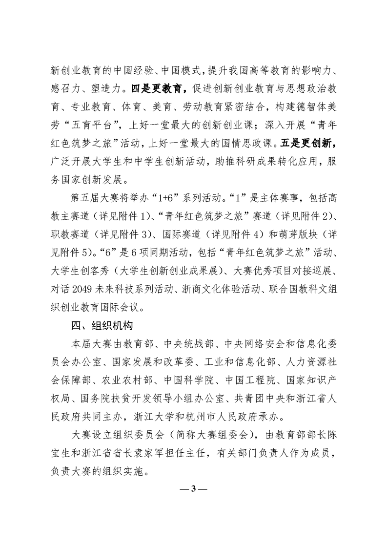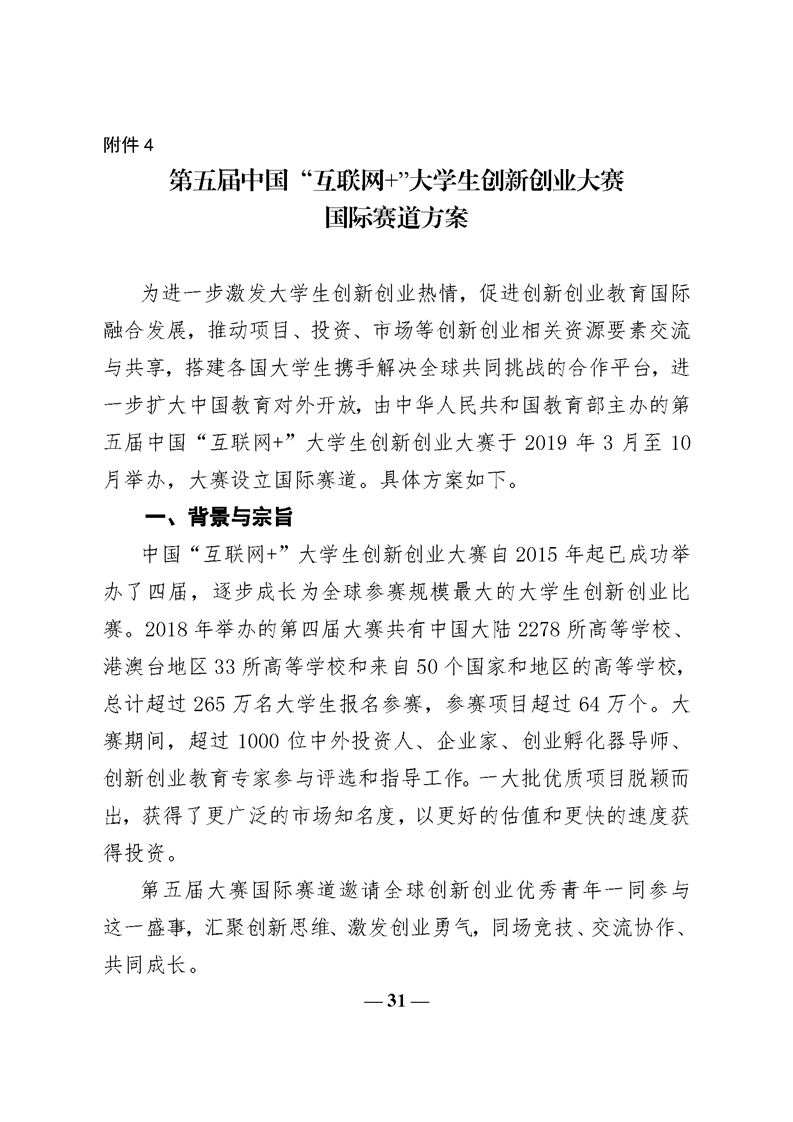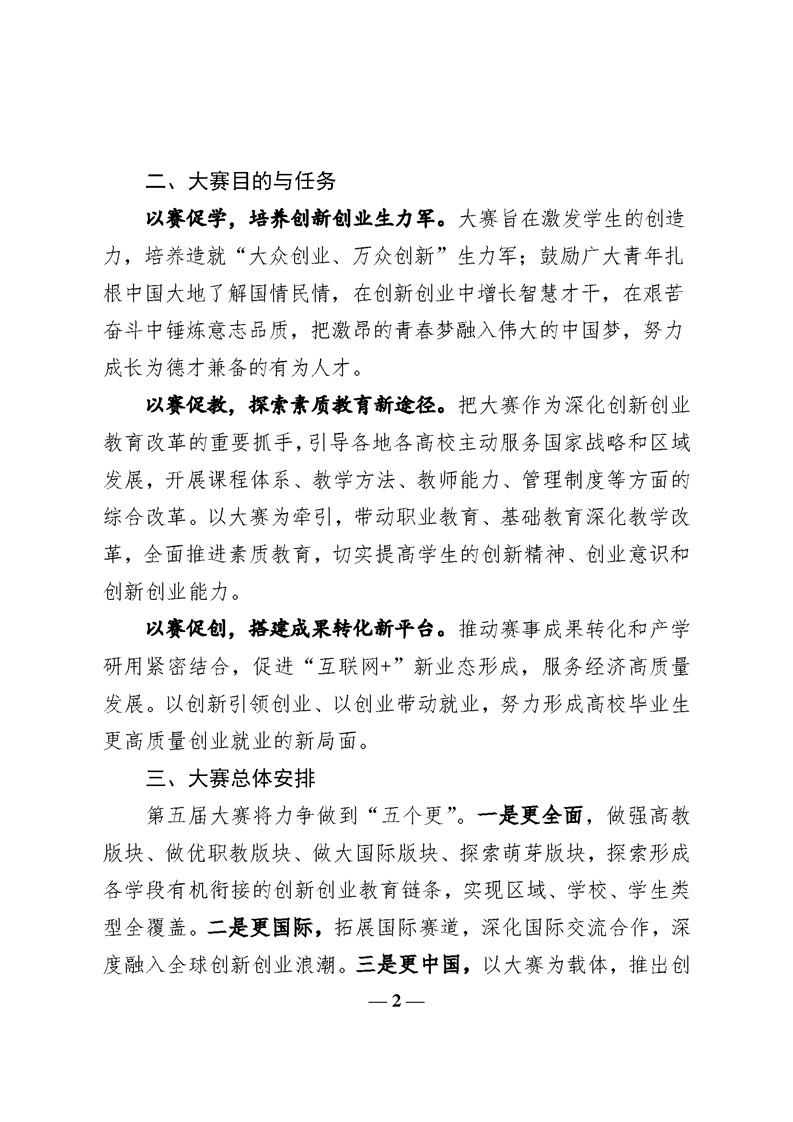 教育部关于举办第五届中国“互联网”大学生创新创业大赛的通知