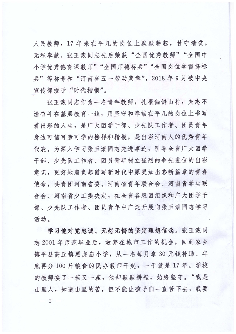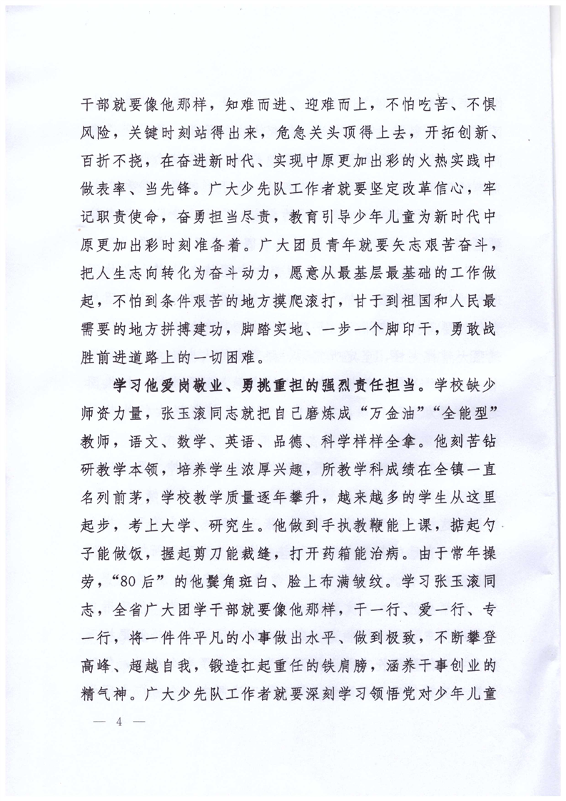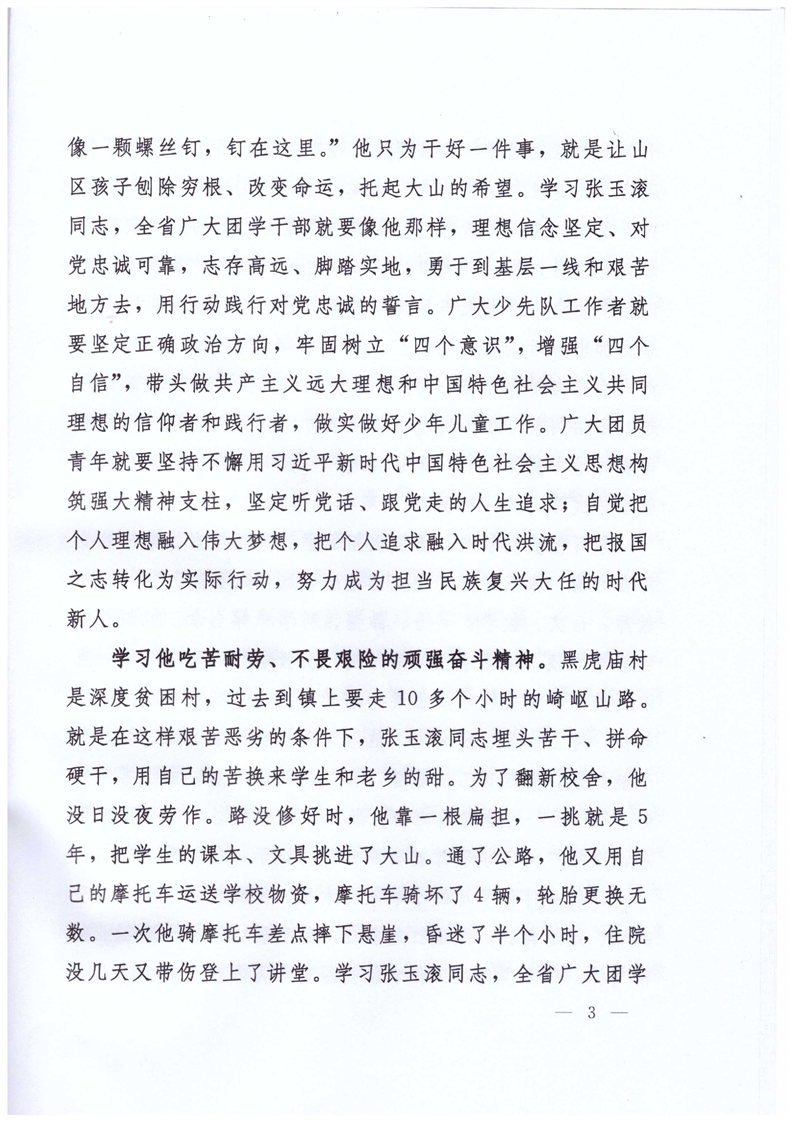 关于组织全省各级团组织和广大团学干部、少先队工作者、团员青年向张玉滚同志学习的通知