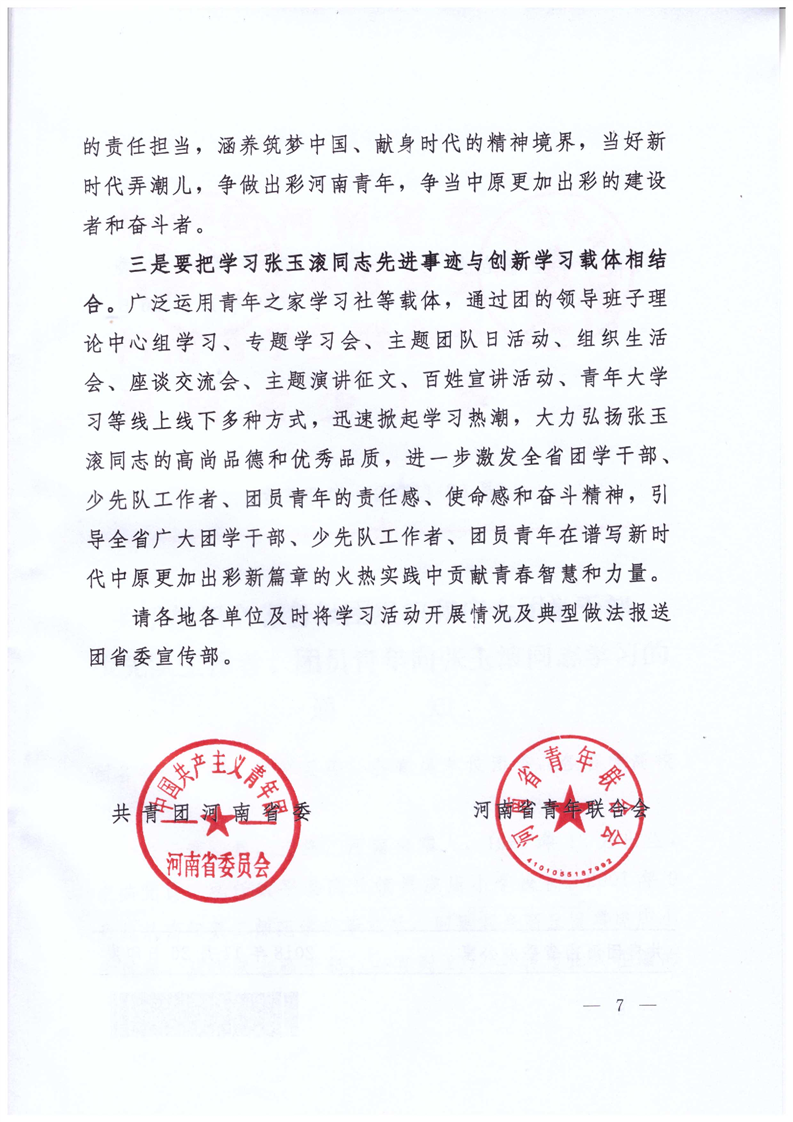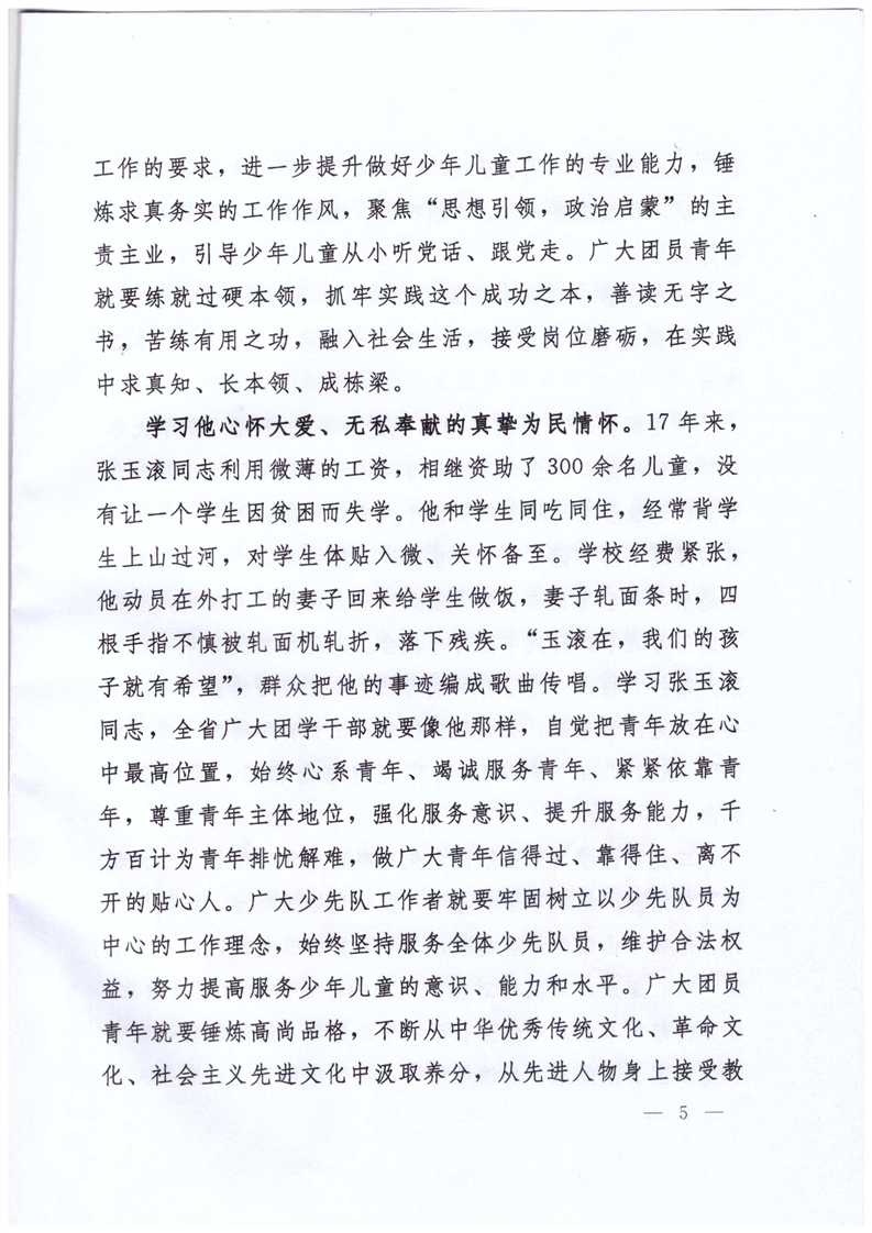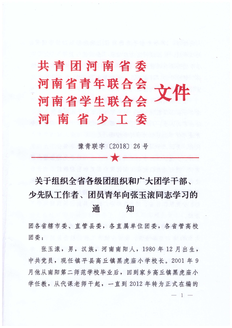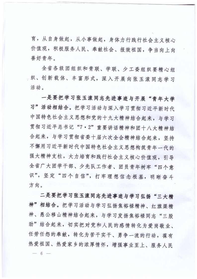 关于组织全省各级团组织和广大团学干部、少先队工作者、团员青年向张玉滚同志学习的通知