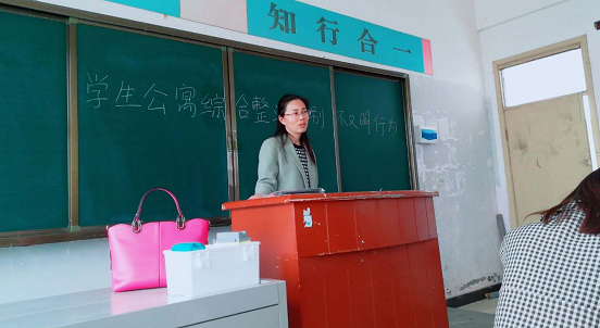 2018年4月16日,财经学院进行创建文明宿舍班会。