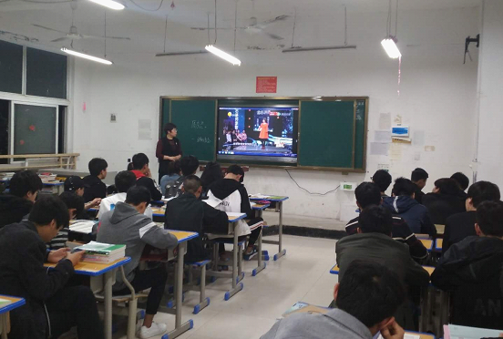 2018年9月3日,信工学院给同学们看感恩教育视频。