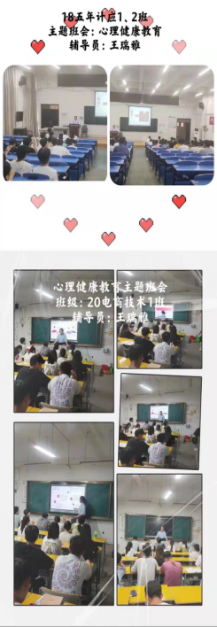 辅导员首先向同学们介绍了什么是心理学,心理出现问题的特征,然后讲解了大学生存在心理问题的原因,也介绍了调节心理问题的可行方法。给同学们阐述了如何适应大学生活,如何交友,自己应该以何种心态来面对大学的学习和生活。最后,向同学们介绍了我们学校的心理咨询中心,告诉了同学们我们校区的心理咨询中心位置、预约热线、开放时间、微信平台以及各类开放放松室;也介绍了我们学校的心理活动,如大学生心理健康筛查月,心理问卷调查,心理健康一对一辅导等等。