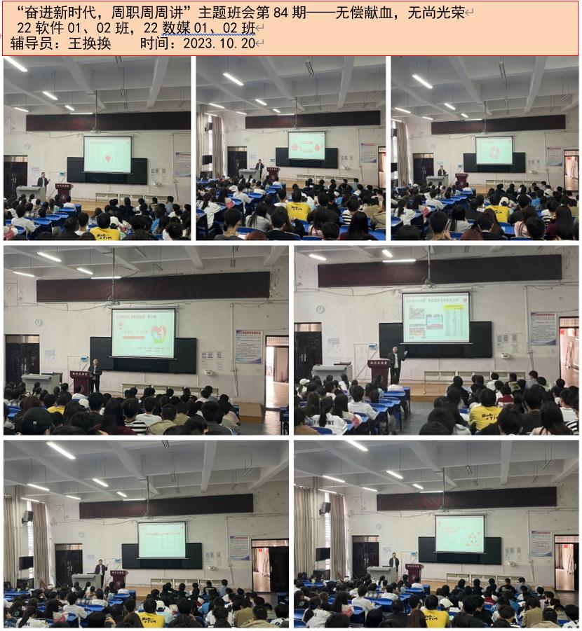 献血让生命延续,奉献让真情永存,无偿献血,血浓情更浓,热血是生命的标志,无偿献血是文明的进步。为弘扬无私奉献的精神,提高同学们对无偿献血的认识,以实际行动关爱生命,为社会贡献一份力量。10月19日晚自习期间,周口职业技术学院伟德(bevictor)官方网站召开“奋进新时代周职周周讲”第八十四期主题班会——无偿献血,无上光荣。