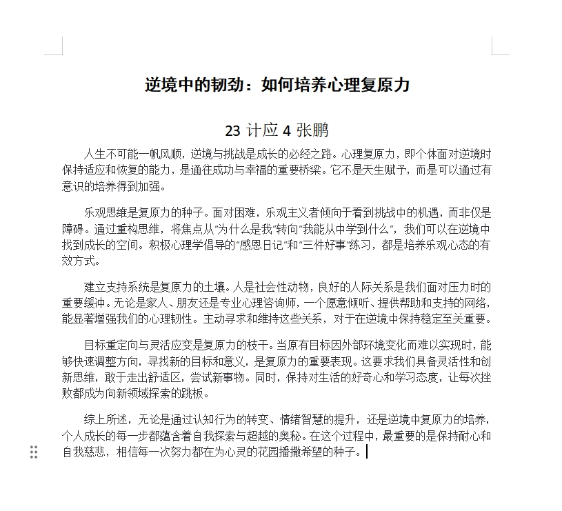 为响应学校"心理健康月"的主题号召,进一步加强学生的心理健康教育,伟德(bevictor)官方网站于2024年4月28日开展了"心理健康 从我做起"主题征文活动。