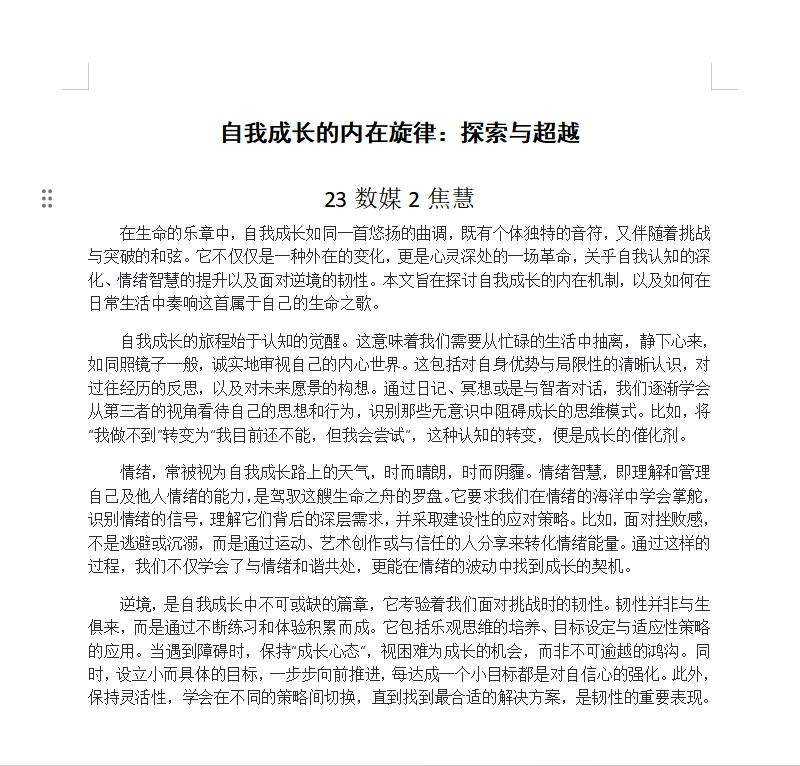 经过为期一周的征文,学院共收到近百篇优秀作品。经过评审,最终评选出一等奖3篇、二等奖5篇、三等奖10篇,并给予适当的精神奖励。获奖作品反映了同学们对心理健康的深入思考,展现了他们积极向上、勇于自我探索的精神面貌。