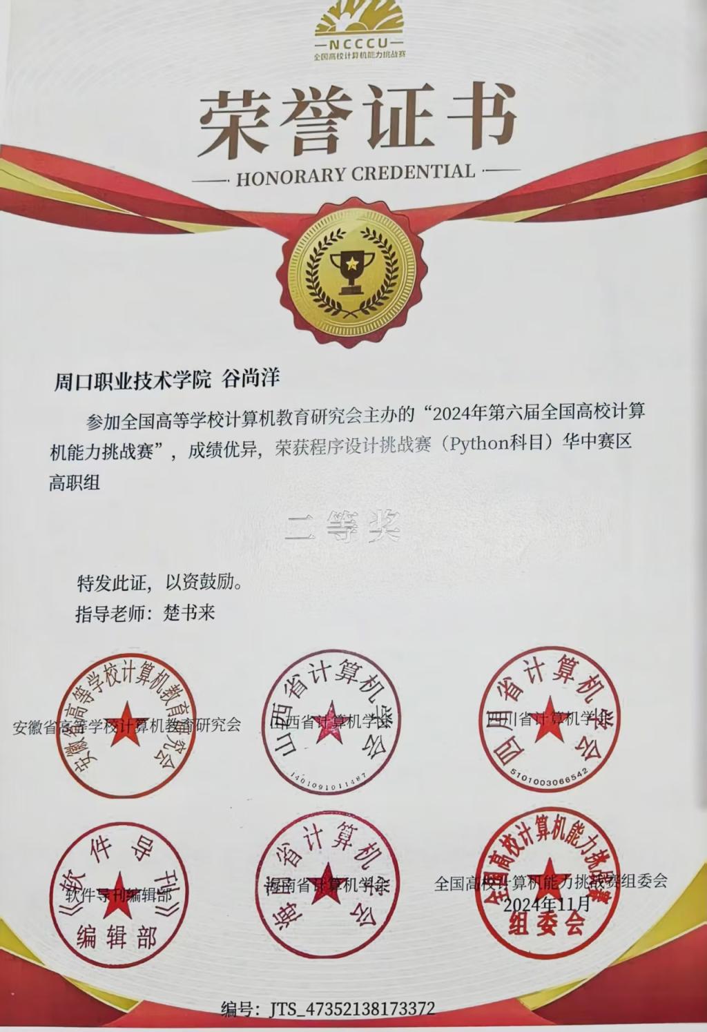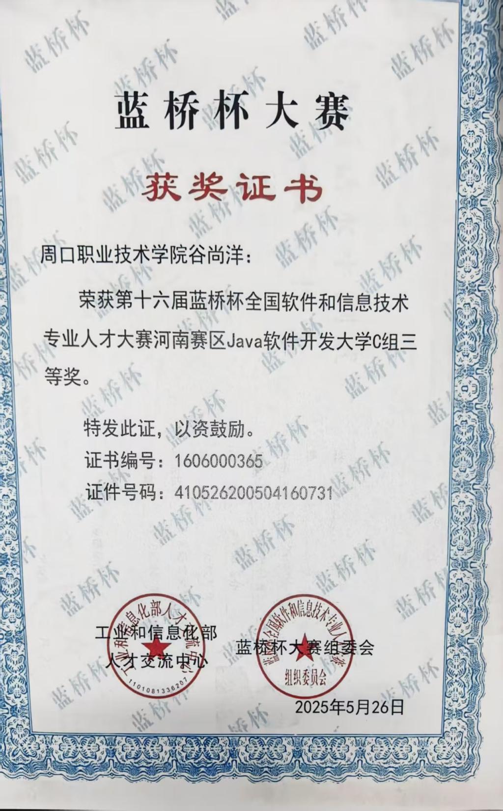 生活实践中,他以真诚与责任心对待集体和身边同学,积极参与班级建设与志愿服务,在合作中学会理解包容,在奉献中体悟责任担当,实现了专业能力与综合素养的同步提升,用行动诠释了“无论做什么,都要全力以赴”的人生信条。