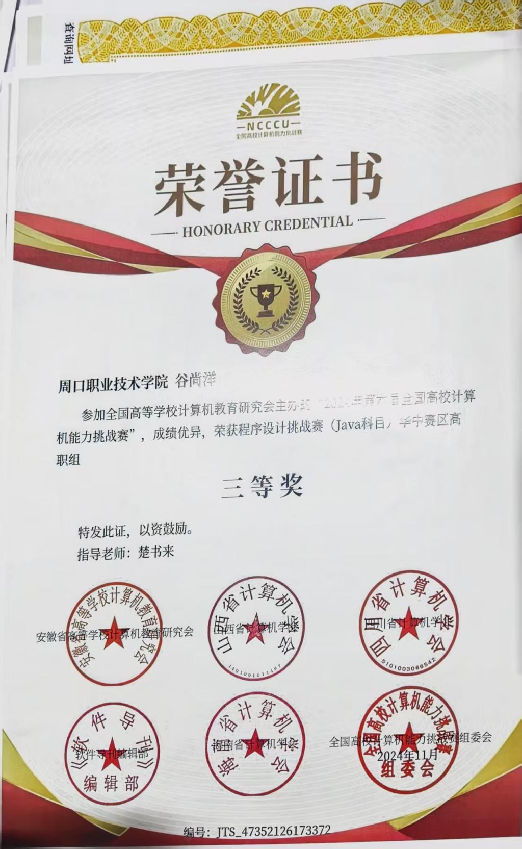 专业学习上,谷尚洋保持高度自律与专注,成绩稳步提升且综合表现优异,多次获教师表扬。他系统掌握Java、Python等编程语言,深耕算法与数据结构领域,具备独立开发与问题分析能力;同时积极投身编程竞赛与项目实践,在团队协作和项目管理中积累了丰富经验,还坚持总结反思,不断优化学习方法,保持自主探索的学习精神。在钻研学业之余,他还主动学习党的理论知识,持续提升思想觉悟与政治素养,始终以诚实守信、勇于担当的姿态在集体中传递正能量。