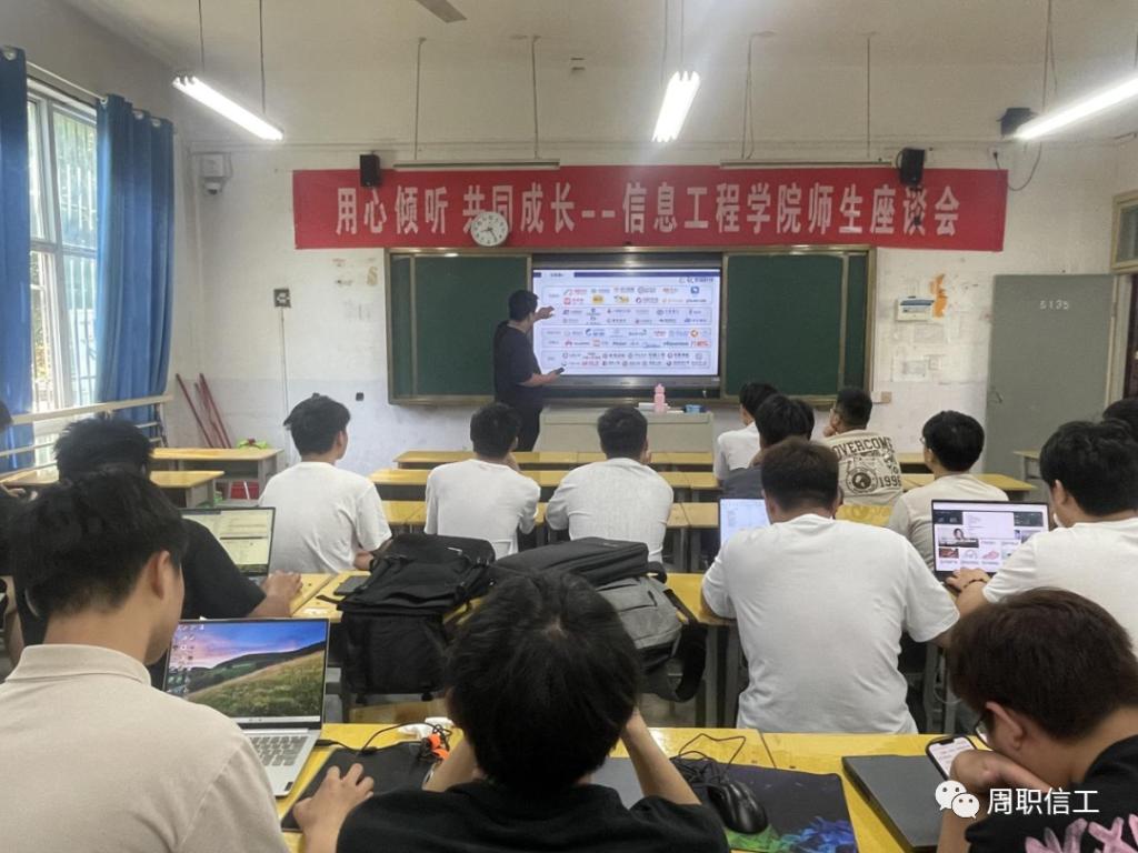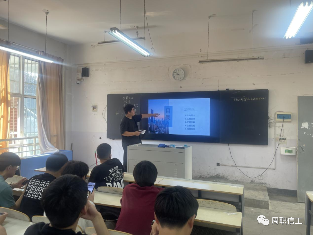 各企业负责人通过放映宣传片和PPT演示的方式,向同学们介绍了企业基本情况、岗位需求、薪资待遇等多方面内容。在互动环节,同学们就自己所关心的专业对口问题、企业所需求的人才素质问题、公司发展平台与机会等问题与企业方进行了交流。
