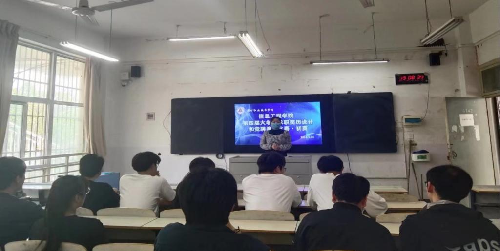 在比赛现场,选手们展示了自己个人简历的内容,选手精心准备,他们通过PPT详细的介绍了自己的个人信息、求职意向、技能证书等方面的内容,每位选手的简历设计包含了对学习经历的总结,饱含着对未来目标的追求,散发着在求职路上的热血与希望,展现了我院学子积极向上的精神风貌。