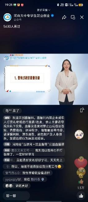 本次直播由河南财经政法大学张粮瑞、陈彤老师作为主讲人,临近毕业季,大学生在求职道路上充满了机遇,也会面临一些风险,在求职过程中,高校毕业生要格外关注相关信息,警惕求职骗局。此次直播通过有趣的视频讲解,告诉同学们如何避免就业过程中遇见的陷阱,不要将个人身份证件原件、银行卡密码等敏感信息交给公司,以防被不法分子利用;“高校毕业生在求职期间应加强自我保护,注意防范虚假招聘、乱收费、扣证件、培训贷等求职陷阱,要提高求职安全意识,增强识别就业陷阱的能力,不走所谓的“求职捷径”。