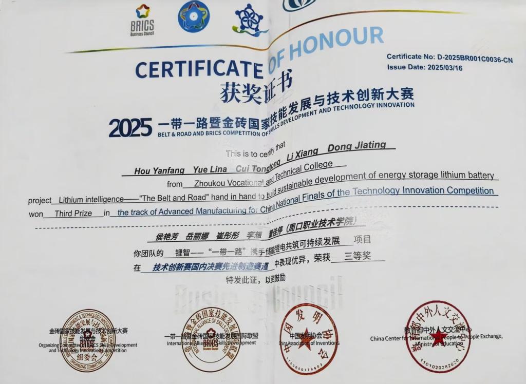在学业“扎根”阶段,李想曾因担心跟不上专业进度,将课堂重难点记满3本笔记,利用课余时间夯实基础。同时她入选校级青马工程,在学习中树立起“将个人理想融入时代发展”的信念,实现了思学相长,为后续竞赛实践筑牢根基。