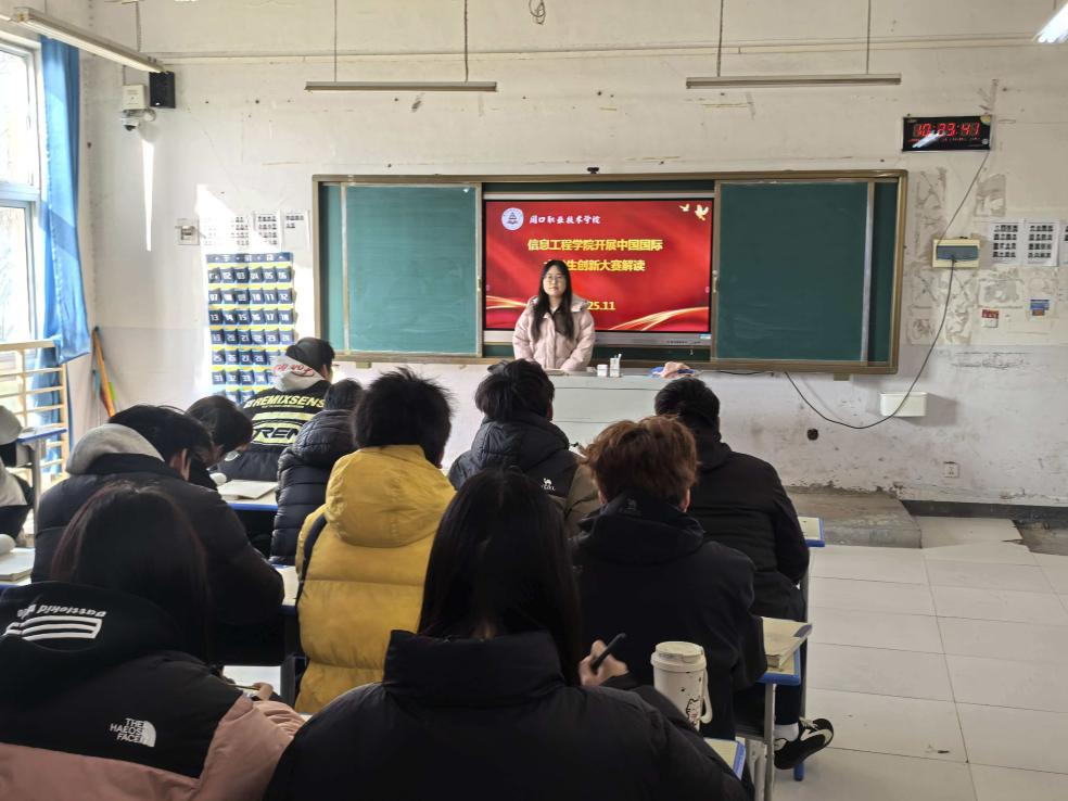 活动现场,围绕大赛的参赛赛道设置、报名流程、评审标准、作品申报要求等核心内容展开详细讲解,分析了技术创新、项目设计等方面的备赛技巧。参训学生认真记录、积极提问,纷纷表示此次解读活动干货满满,不仅深入了解了大赛的各项细则,也增强了参与大赛的信心和动力。