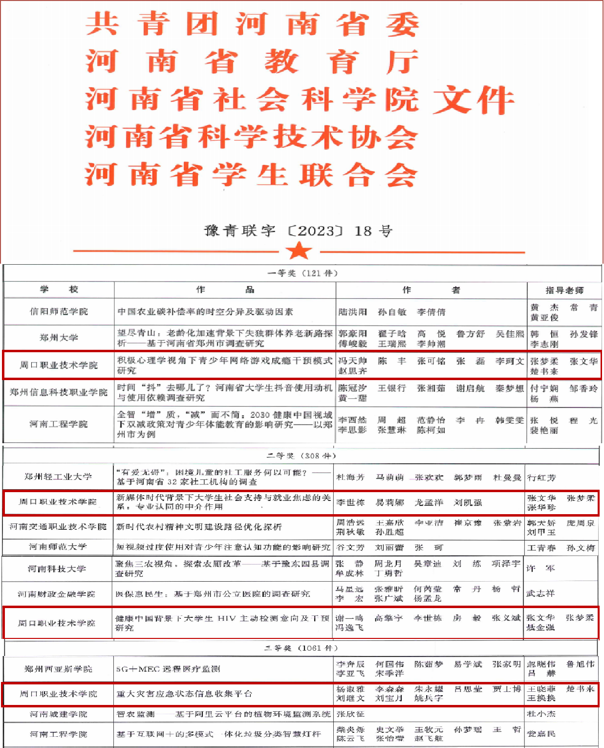 近日,由共青团河南省委、省教育厅、省社会科学院、省科学技术协会、省学联共同主办的第十六届“挑战杯”河南省大学生课外学术科技作品竞赛圆满结束。自接到大赛通知以来,伟德(bevictor)官方网站高度重视、积极宣传、广泛发动,最终喜获一等奖1项、二等奖2项、三等奖1项,张梦柔、张文华、楚书来三位老师被评为优秀指导老师,获奖数量创历史新高。